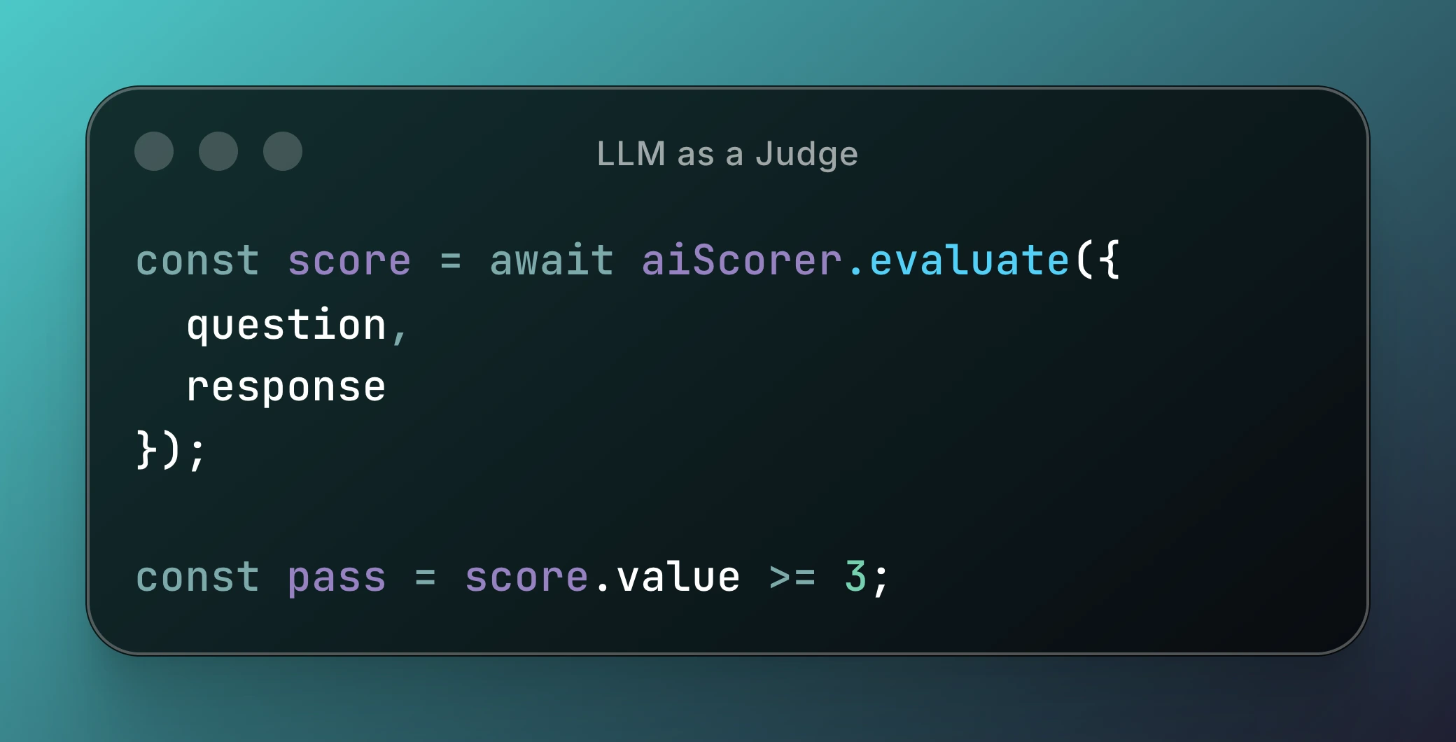 Using AI to judge AI feels slightly wrong the first time you do it, but it works well when you have more open ended output with content that’s varied. Those are situations where simple deterministic string matching is too brittle and you’d usually want human judgement to decide whether it’s a good output or not. You can also combine and layer different evaluators to give an overall signal on quality, removing the dependence on any single measure of “correctness”. The goal isn't perfect truth but rather a stable signal across versions.